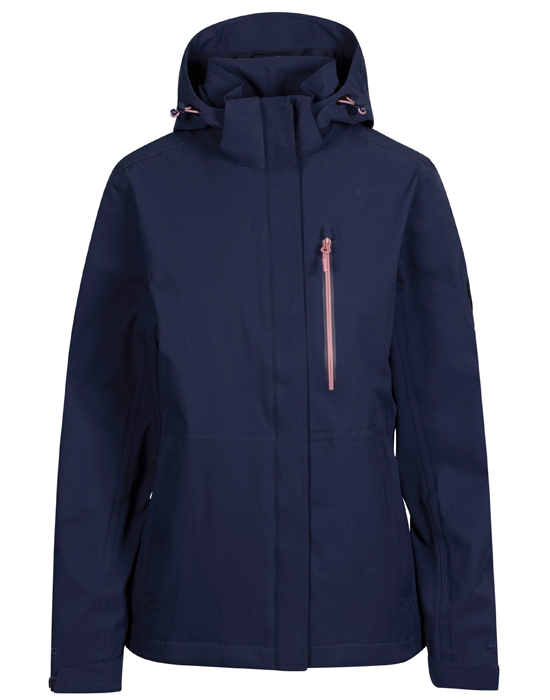 Trespass DLX Katya ženska vodootporna jakna izrađena od visokokvalitetnog materijala, osigurava da ostanete suhi i u ekstremnim vremenskim uvjetima vodoodbojni džep na prsima 2 donja džepa s patentnim zatvaračem podesiva vezica na rubu omogućuje prilagodbu širine za bolju zaštitu od hladnoće podesivi čičak na manšetama pruža udobno pristajanje oko zapešća i sprječava ulazak hladnog zraka u jaknu kontrastni prugasti detalj – Stilski naglasak na dizajnu jakne podesiva i odvojiva kapuljača